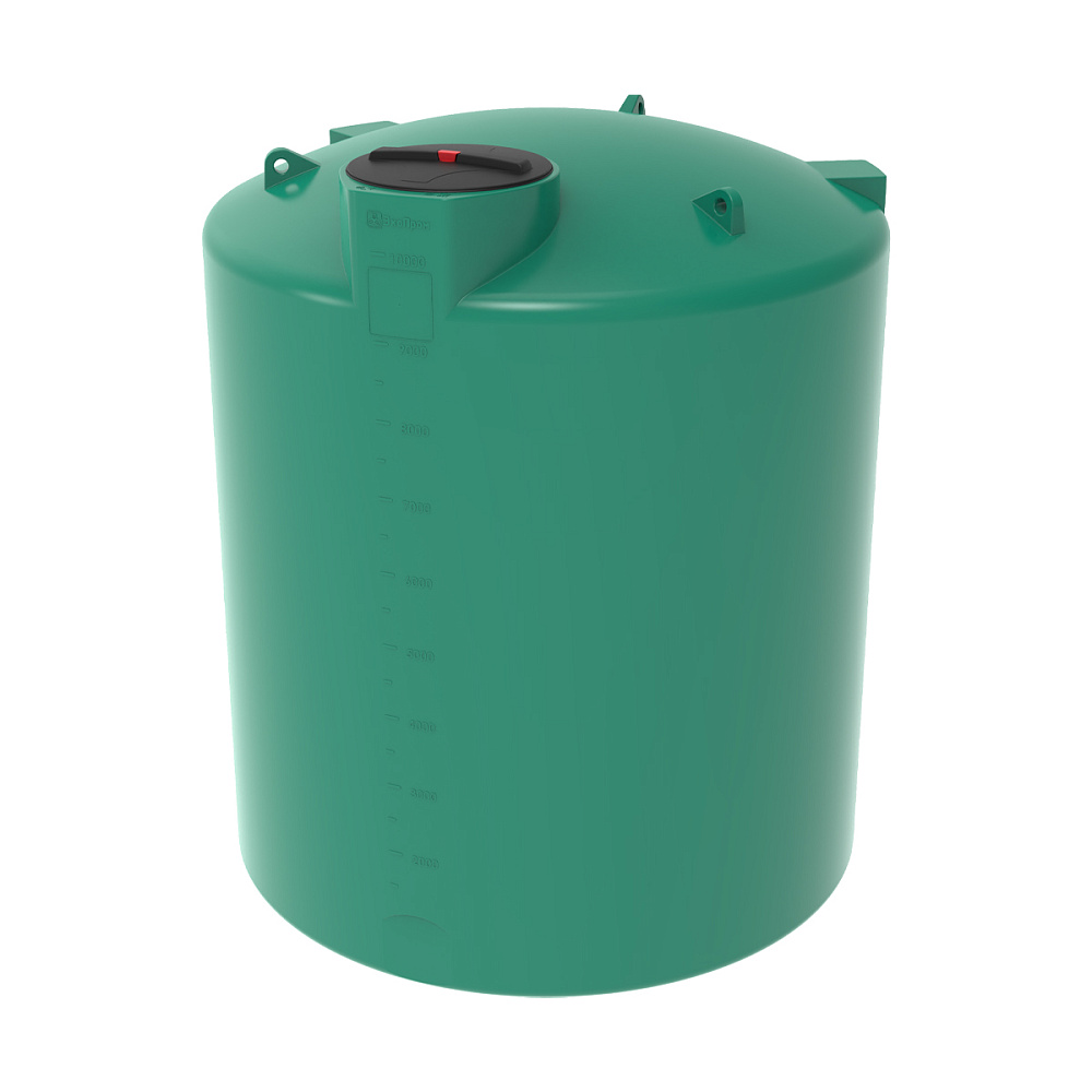 емкость, для воды / для дизельного топлива, форма емкости: цилиндрическая, тип эксплуатации: наземная, расположение: вертикальное, тип крышки: резьбовая, плотность вещества макс.: 1 г/куб. см, объем 10 000 л