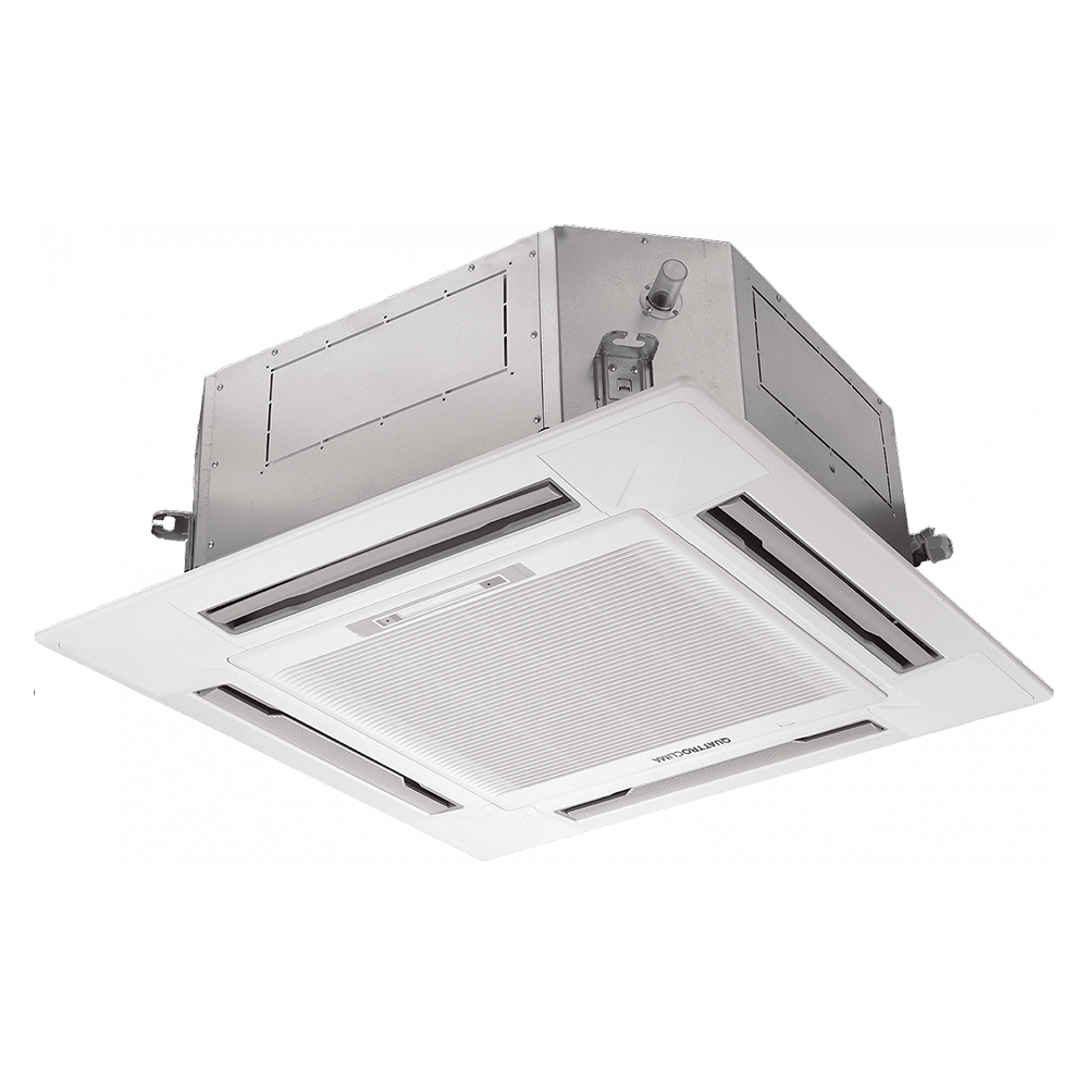 Оосбенности и преимущества: компактный размер для удобства монтажа в стандартную ячейку подвесного потолка, 4-х поточное распределение воздушного потока, встроенный дренажный насос с высотой подъема воды до 600 мм, возможность подмеса свежего воздуха, Auto Restart — сохранение последних настроек в случае перебоев с электроэнергией.