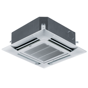 кассетная сплит-система, обогрев и охлаждение помещений до 70 м², мощность охлаждения 7000 Вт / обогрева 7000 Вт, режим вентиляции, поддержания температуры, ночной, осушения воздуха, приточной вентиляции, потребляемая мощность при охлаждении 2390 Вт / обогреве 2400 Вт, управление с пульта, уровень шума внутреннего блока 36 дБ / 44 дБ