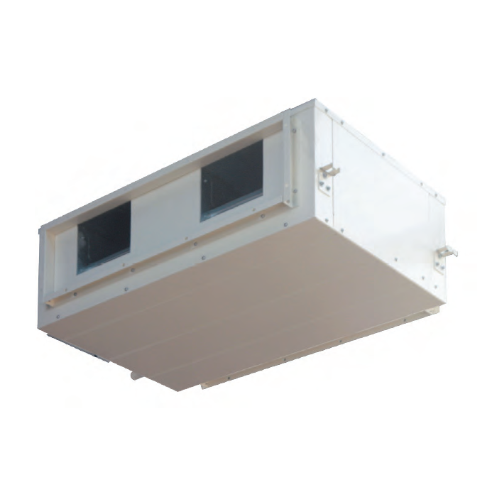 Особенности и преимущества: внешнее статическое давление – 200 Па, идеальный блок для помещений со сложной планировкой, автоматическая система подачи свежего воздуха, тип вентилятора – центробежный, двигатель переменного тока, способ соединения трубопровода – сварка, воздушный фильтр, встроенный EXV-модуль, режим осушения.