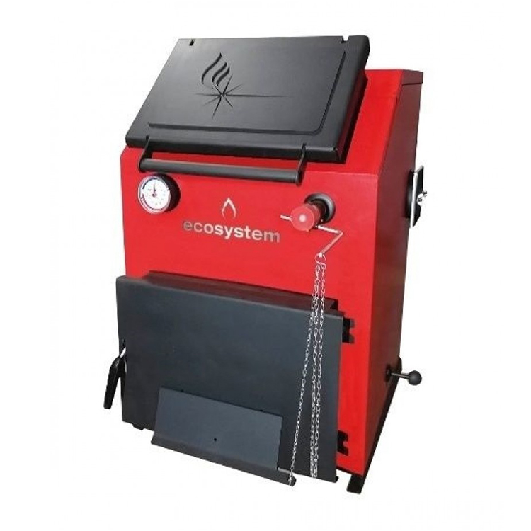 Особенности и преимущества: независимость котла от электричества, большой объем загрузочной камеры, сжигание любого вида твердого топлива, удобное расположение и большой размер загрузочной дверцы обеспечивает простоту загрузки топлива и чистки котла, установка механического регулятора тяги значительно увеличивает время горения топлива, водонаполненные колосники повышают КПД котла, встроенный термоманометр обеспечивает удобство контроля температуры теплоносителя в котле и давления в системе отопления, воздушные каналы в камере сгорания обеспечивают поступления кислорода в ее верхнюю часть для лучшего дожига топлива, чугунная подколосниковая гребенка облегчает шуружение прогоревшего топлива, защитная дверца нижнего люка выполнена из чугуна толщиной 15 мм, что надежно предостерегает от прогорания и выпадения угля, возможность установки микропроцессорного контроллера управления и вентилятора наддува дает возможность увеличить время горения и вместе с тем позволяет экономить топлива.