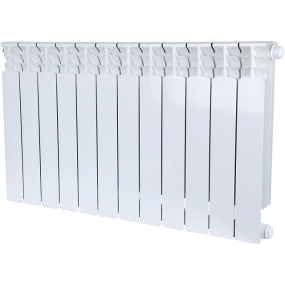секционный, материал: биметаллические, подключение: нижнее правое, межосевое расстояние 50 см, число секций: 12, диаметр подключения: 1 дюйм, ширина одной секции 8 см, макс. рабочее давление 20 бар, литье под давлением, глянцевое покрытие, макс. рабочая температура 135°C