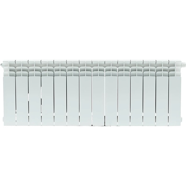 секционный, материал: биметаллические, подключение: нижнее правое, межосевое расстояние 35 см, число секций: 14, диаметр подключения: 3/4 дюйм, ширина одной секции 8 см, макс. рабочее давление 30 бар, литье под давлением, глянцевое покрытие, макс. рабочая температура 110°C