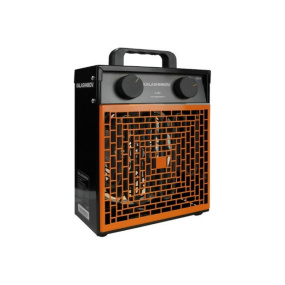 тепловая пушка; площадь обогрева 100 кв.м; максимальный воздухообмен 820 куб.м/ч; напряжение 380 В; защитные функции: защита от перегрева; регулировка температуры, вентиляция без нагрева; механическое управление; габариты 31.5х42х34.5 см; вес 8.8 кг