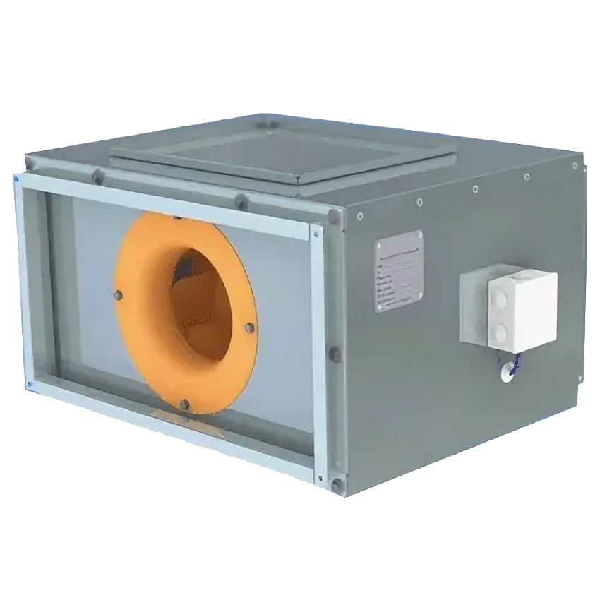 Особенности и преимущества: состоит из прямоугольного корпуса, рабочего колеса и асинхронного двигателя, пониженный уровень шума, повышенная звукоизоляция корпуса, монтируется непосредственно в воздуховоды в любом положении, регулировка скорости производится при помощи частотного преобразователя (опция), при монтажных работах необходимо использовать термозащиту двигателя (опция).