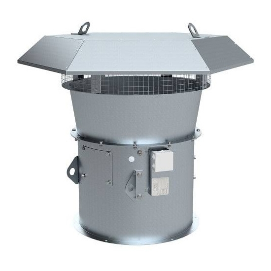 крышный вентилятор, максимальный расход воздуха 108 000 куб. м/ч, максимальный располагаемый напор 1 000 Па, взрывозащищенный, присоединительный размер 1170х1170 мм, диаметр рабочего колеса: 1120 мм, материал корпуса: оцинкованная сталь, монтаж: горизонтальный, степень защиты: IP54