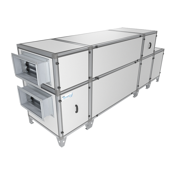 Особенности и преимущества: встроенная цифровая автоматика (MODBUS) с возможностью подключения к системе "умный дом", пульт управления с цветным сенсорным дисплеем, удаленное управление (WEB-интерфейс), управление вентилятором по датчикам CO2 / VOC (опция), контроль загрязненности воздушного фильтра (цифровой датчик давления), управление увлажнителем, управление вытяжным вентилятором, управление увлажнителем, воздушное отопление (опция CT), недельный таймер, VAV-совместимая вентустановка, вентилятор EBMPapst серии EC (инверторный), 10-ти ступенчатое регулирование производительности, пластинчатый полипропиленовый противоточный рекуператор, нагреватель электрический, фильтр класса G4 на входе притока, управление внешним ККБ и охладителем воздуха (опция), воздушный клапан на входе притока, с электроприводом, без возвратной пружины, термо- и шумоизолированный корпус.