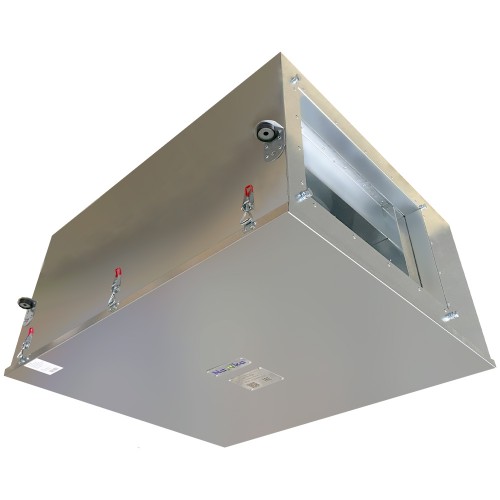приточная, пульт дистанционного управления, тип нагревателя: водяной, тип вентилятора: EC, фильтр грубой очистки: G4, установка: подвесная, класс защиты: IP50, мощность нагревателя: 19800 Вт, мощность вентилятора 230 Вт, Wi-Fi, воздухообмен 1 384 куб. м/час, корпус: бескаркасный 50 мм, максимальный напор 1 100 Па, количество скоростей 7, материал рабочего колеса пластик, подключение 500x300 мм, площадь помещения 520 кв. м, рабочее колесо: радиальное мотор-колесо КНР, управление фреоновым охладителем