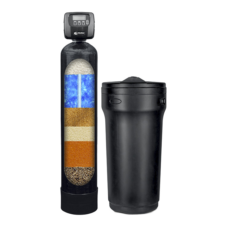 Особенности и преимущества: поршневой механизм клапана, прямоточная регенерация (сверху-вниз), справляется с самыми высокими концентрациями железа и марганца, способствует защите систем водоснабжения, водонагревательных приборов, в том числе стиральных и посудомоечных машин, водонагревателей и электрочайников, позволяет уменьшить расход моющих средств, регенерация фильтра производится в автоматическом режиме с помощью электронного управляющего клапана по сигналу встроенного счетчика или таймера. Для приготовления регенерационного раствора рекомендуется использовать таблетированную поваренную соль. Работа системы полностью автоматизирована и не требует постоянного присутствия обслуживающего персонала.