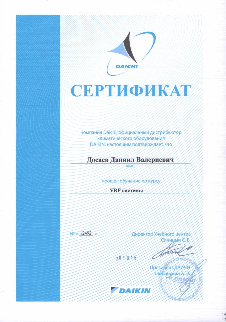 Наличие действующих сертификатов от производителей климатического и инженерного оборудования подтверждает право на подбор, поставку, монтаж и обслуживание оборудования в строгом соответствии с требованиями заводов-изготовителей. Сертификаты брендов свидетельствуют о прохождении профильного обучения и наличии необходимой квалификации для работы с системами кондиционирования, вентиляции, отопления и водоснабжения.